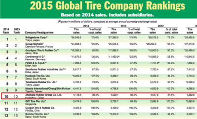 ZC Rubber permanece NO.10 na liga mundial de pneus