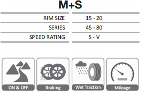 O piso largo e as ranhuras com vários degraus aumentam a área da superfície do piso para melhorar a tracção em ambas as estradas