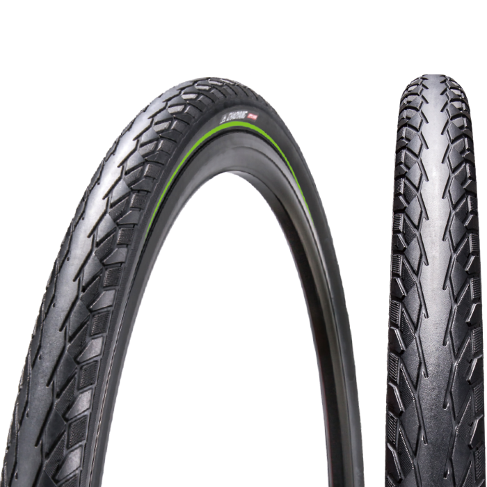 O lado serrilhado será a melhor escolha para a estabilidade e grande tração molhada. A baixa resistência ao rolamento, mais conforto de condução e excelente desempenho de drenagem podem ser garantidos pelo excelente design liso ranhurado no centro