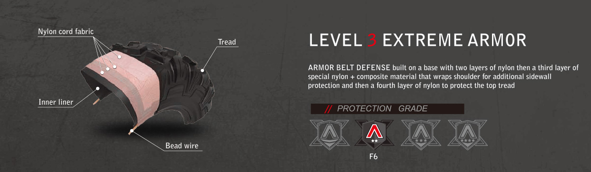 | Part No. | Diâmetro do pneu | Padrão | TT/TL | PR | Diâmetro Geral (inch) | Largura da Seção (inch) | Medida do aro (inch) | Pressão Inflada (psi) | Carregamento máximo (Ibs) | Profundidade do Piso | Proteção | |